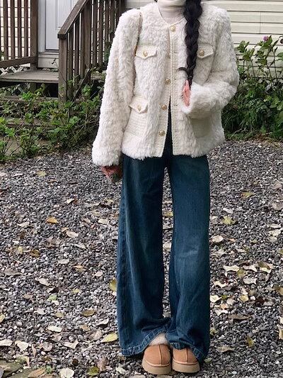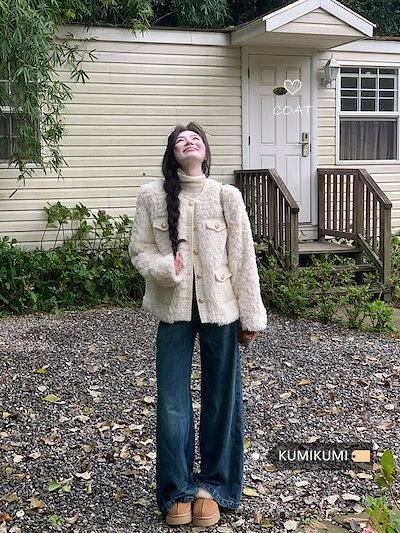 秋冬防寒 あったかアウター 韓国風スタイルアップ かわいい ブルゾンファー付きファッション系裹起毛大人ゆったりカジュアルストリートサイズレディースムートン襟ゆるダボ シルエット学生通学丈