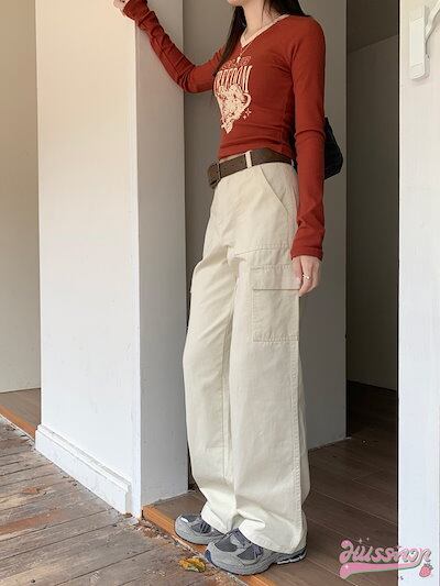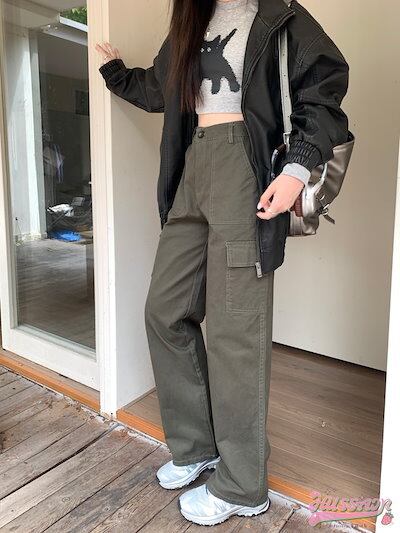 パンツ ワイド ストレート ハイウエスト 脚長効果 美脚効果 細見え 春 緑 白 黒 カジュアル ストリート 韓国ファッション レディース お出かけ