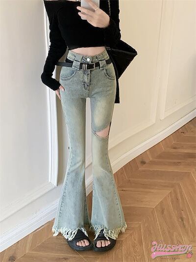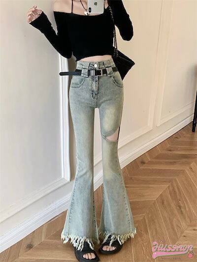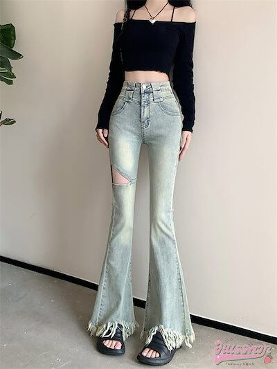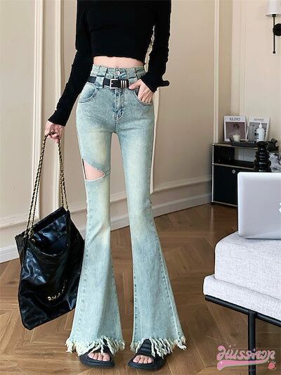 パンツ デニム ジーンズ スキニー ワイドレッグ スリム フリンジ ハイウエスト 脚長効果 美脚効果 細見え 春 カジュアル 韓国ファッション レディース お出かけ