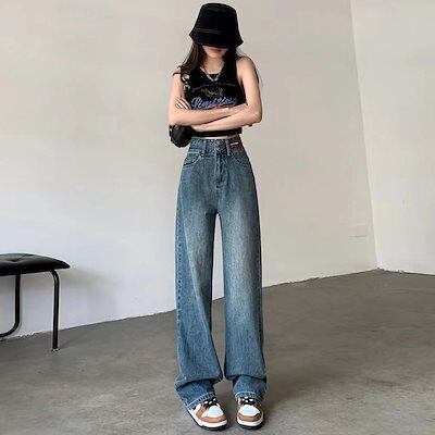 【短/長2タイプ】人気 デニムパンツ レディース ゆったり ワイド ハイウエスト フレア ダメージ 大きいサイズ レディースロングパンツ ストレート ストレッチ スキニー ジーンズ け メガ割