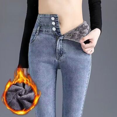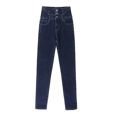 【3日以内出荷】脚長効果!スキニーデニムパンツ スタイリッシュなギャザーに 厚手のレトロな外履きジーンズレディースハイウエスト腹巻タイトストレッチロングパンツ かっこいい!スラックスパンツ