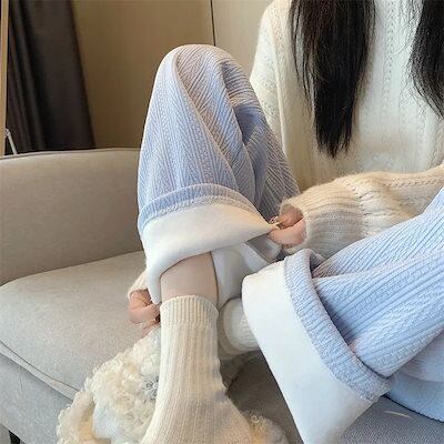 2024 秋 冬 デニムパンツ ニットパンツ 麦の穂柄 シュニール 秋 冬 ハイウエスト ストレートパンツ ワイドパンツ レディース カジュアル トレーリングパンツ ズボン 韓国 大きいサイズ