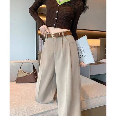 パンツ ロング丈 ワイド ストレート ハイウエスト ウエストゴム ゆったり 脚長効果 美脚効果 細見え かわいい シンプル 無地 秋 韓国ファッション レディース お出かけ
