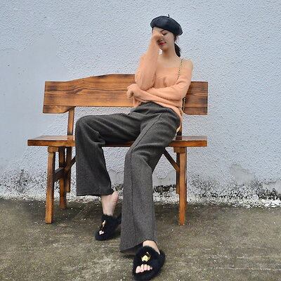 秋冬のワイドパンツ 韓国ファッション 裏起毛パンツ 気品 ワイドパンツ スウェットパンツ ワイドパンツレディース秋冬 厚手 防寒 ハイウエスト パンツ クリスマス