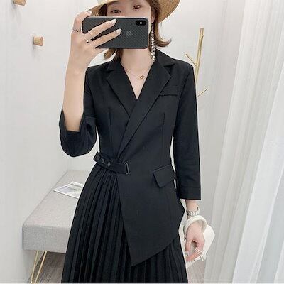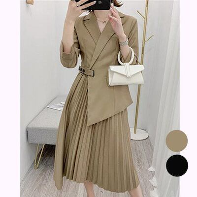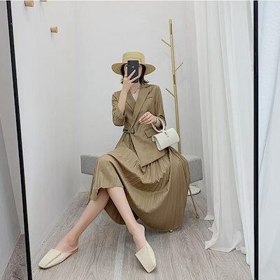 良い商品!スーツワンピース レディース マキシワンピース 七分袖 Vネック フォーマル オシャレ プリーツスカート 春夏 大きいサイズ 結婚式ドレス 40代 30代