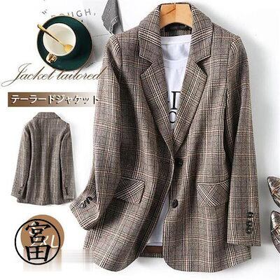 2024年秋上新テーラードジャケット レディース チェック柄 スーツ ジャケット 秋 長袖 アウター 着痩せ ビジネス 事務服 制服 事務所 フォーマル