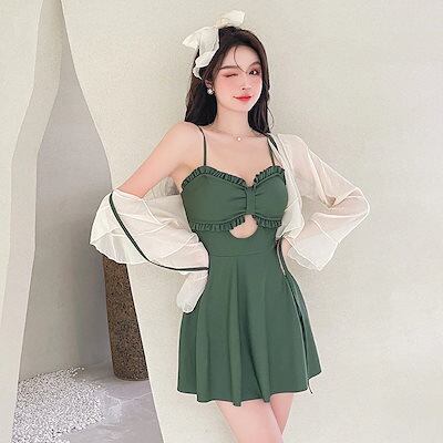2024 人気 水着 レディース水着 体型カバー2点セット2024新型おしゃれ長袖控えめヌーブラ ラッシュガードビキニワンピース水着温泉入浴ins純欲超仙顕痩身ラッシュガード水着