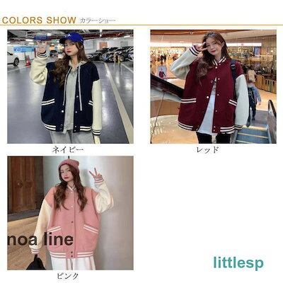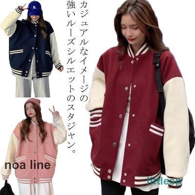 スタジャン レディース オーバーサイズ ジャケット スタジアムジャケット 春 ライトアウター スウェット ライン 配色 切り替え スタジアムジャンパー