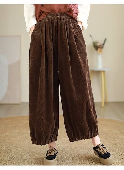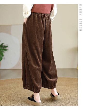 パンツ レディース ワイドパンツ コーデュロイ ボトムス バルーンパンツ チノ チノパンツ ズボン ロング ワイド ウエストゴム 秋冬 ゆったり 大人 体型カバー オーバーサイズ お洒落 きれいめ キ
