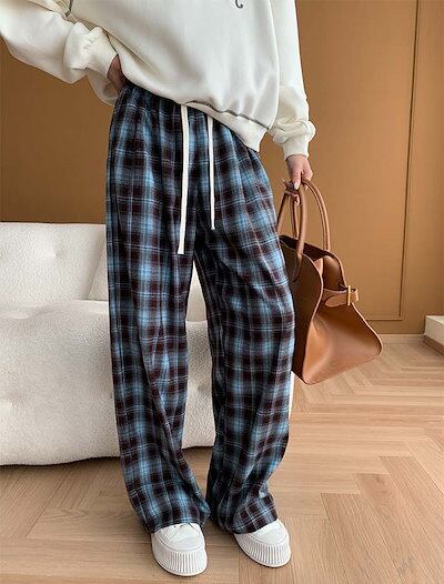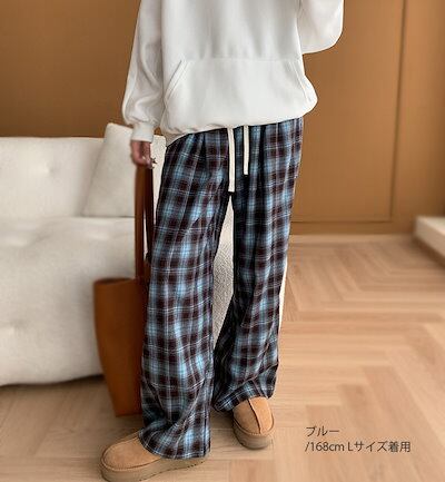 ワイドパンツ レディース チェック柄 ガウチョパンツ イージーパンツ ロング丈 パンツ ズボン ボトムス リラックスパンツ チェックパンツ 大きいサイズ ウエストゴム ゆったり 大きめ リラックス ス