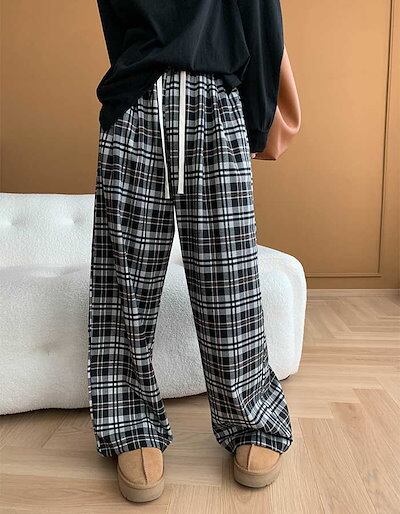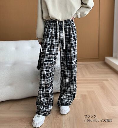 ワイドパンツ チェック柄 ガウチョパンツ レディース イージーパンツ ロング丈 パンツ ズボン ボトムス リラックスパンツ チェックパンツ 大きいサイズ ウエストゴム ゆったり 大きめ リラックス ス