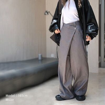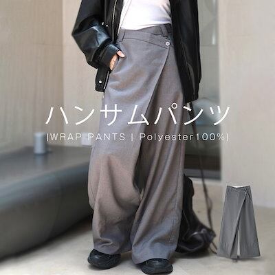 ワイドパンツ パンツ レディース タックワイドパンツ ボトムス アシメ ロング 無地 ワイド ゆったり 大きいサイズ 長ズボン ラップパンツ 変形 スカート風 美脚 上品 落ち感 キレカジ オフィカジ