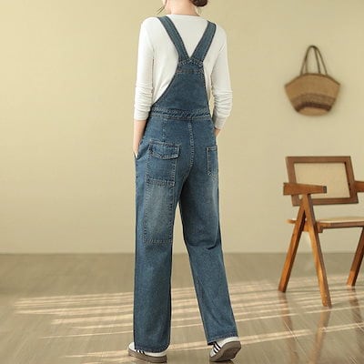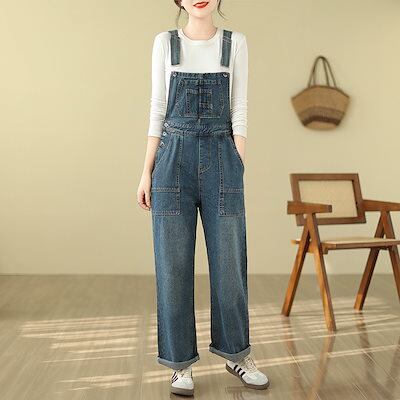 ハイウエスト デニムサロペット レディース ゆったり 大きいサイズ ストレート ワイドパンツ レトロ オールインワンパンツ