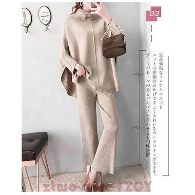 セットアップ ニットセーター 秋冬 レディース ワイドパンツ ニットパンツ 2点セット 30代 40代 50代 お洒落 ママ トップス 入園式 卒業式 セレモニー 上品