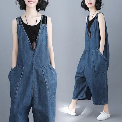 Vネック ワイドパンツ デニム オールインワン レディース サロペット