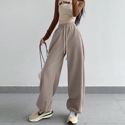 ひんやりボトムス グレー スウェットパンツ レディース 春秋 ズボン 新作 ハイウエスト カジュアル小柄 ワイドパンツ コーデュロイパンツ