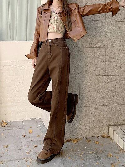 ひんやりボトムス レトロ ジーンズ レディース ハイウエスト ゆったり ストレート ワイドパンツ 秋 かっこいい!スラックスパンツ コーデュロイパンツ