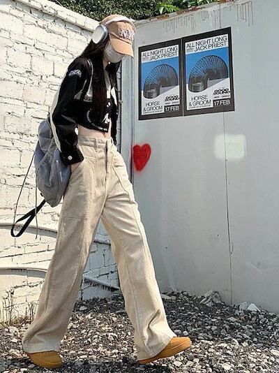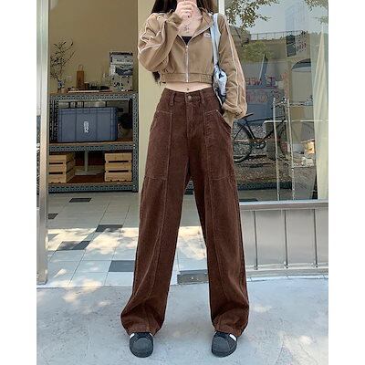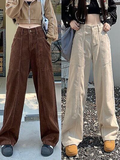 ひんやりボトムス コーデュロイパンツ コーデュロイ カーゴパンツ ワイドパンツ レディース レトロ ゆったり ストレート ハイウエスト ワイドパンツロングズボン かっこいい!スラックスパンツ