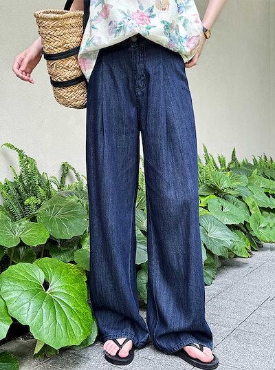 接触冷感 デニムパンツ レディース 春夏 UVケア ワイドパンツ 涼しい デニムワイドパンツ ボトムス ワイド ロング ジーンズ ジーパン ズボン ストレート ひんやりデニム 冷たい 薄手 大きいサイ