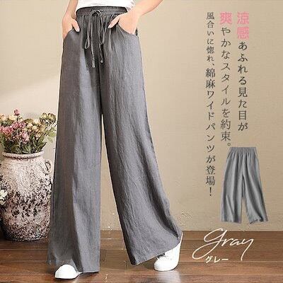 ワイドパンツ 百掛け 綿麻 大きいサイズ UVカット ワイドパンツ 紫外線対策 ゆったり 体型カバー フレアパンツ 夏 韓国 夏 ストレート ズボン レディース ファッション