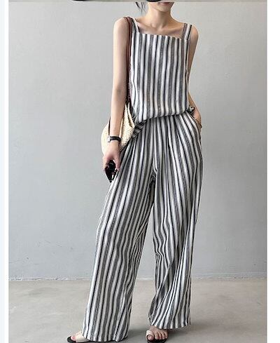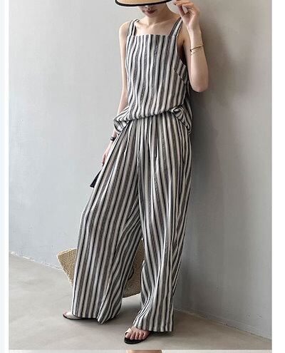 セットアップ レディース 夏 2点セット 薄手 上下セット キャミソール ワイドパンツ イージー フレアパンツ 涼しい カジュアル ナチュラル 大きいサイズ ゆったり 体型カバー ふんわり 爽やか ス