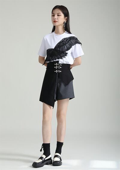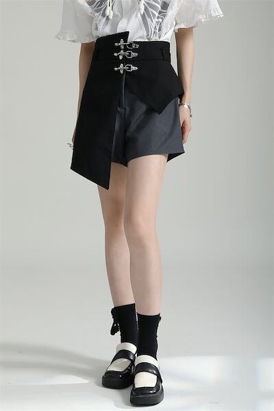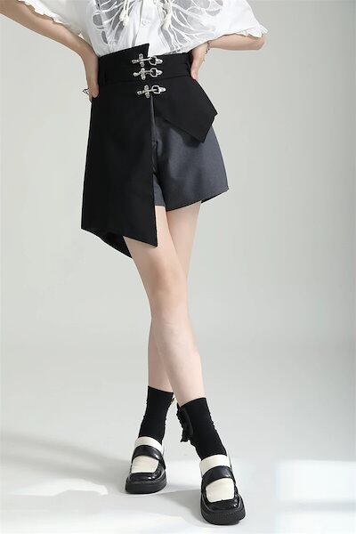 【J.Fashion】 ミニパンツ ワイドパンツ 夏 ドッキング 不規則 ハイウエスト スラックス ショートパンツ カジュアル レディース おしゃれ 上質 関連商品は店で購入可能 メガ割