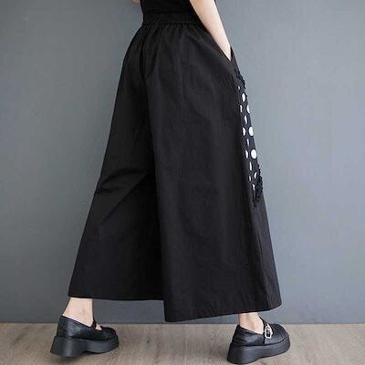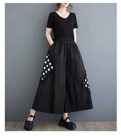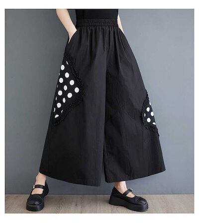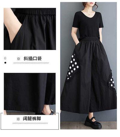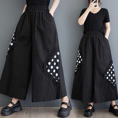 「ファットガール」 2024夏新品 キュロットスカート 水玉柄 九分丈 ワイドパンツ ゴム 体型カバー 大きいサイズ ゆったり レディース