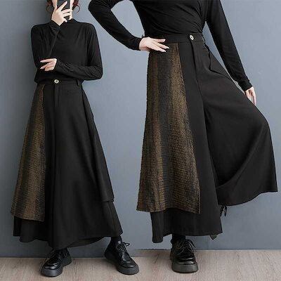 「ファットガール」 2024春新品 キュロットスカート ワイドパンツ ドッキング スラックス 体型カバー レディース ロングパンツ