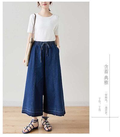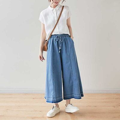 「ファットガール」 夏 フレアパンツ デニム キュロットスカート ワイドパンツ 体型カバー 大きいサイズ ゆったり レディース