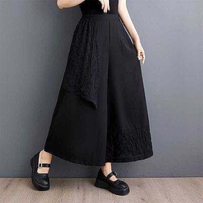 「ファットガール」 2024春夏 キュロットスカート ワイドパンツ 九分丈 ゴム 体型カバー 大きいサイズ ゆったり レディース