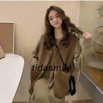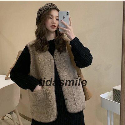 フリースベスト レディース ボアベスト 無地 Vネック トップス カジュアル ポケット付き もこもこ 軽量 暖かい 秋冬 きれいめ おしゃれ