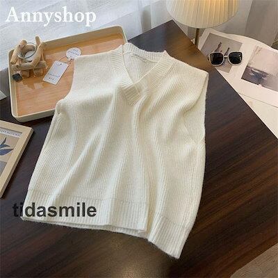 ニットベスト レディース トップス セーター カットソー Vネック 無地 シンプル プルオーバー レイヤード 大きいサイズ 着痩せ 通勤OL 秋冬