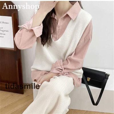 ニットベスト レディース Vネック 無地 トップス プルオーバー 重ね着 ノースリーブ 大人 シンプル ゆったり 着痩せ オフィス 春 秋 冬 韓国ファッション