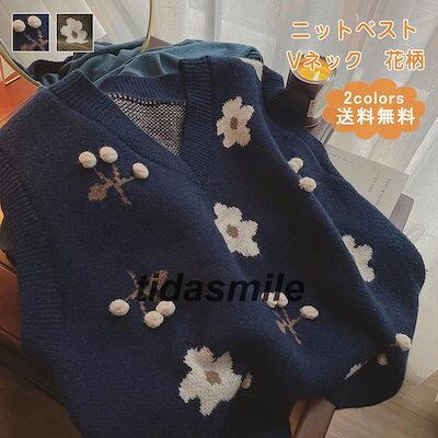 ニットベスト レディース ベストセーター 花柄 Vネック ノースリーブ トップス カジュアル コーデ 暖かい 可愛い ゆったり 春秋冬 おしゃれ