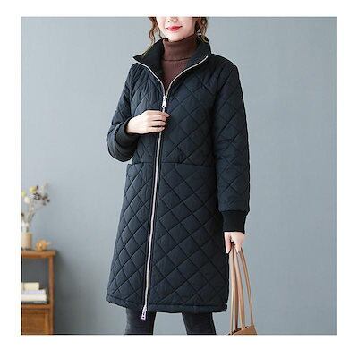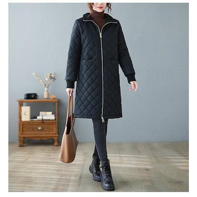 キルティングコート 中綿コート レディース ロング丈 中綿ジャケット ジップアップ ブルゾン 裏ボア 羽織 一部即納 秋冬 アウター 防寒 体型カバー 無地