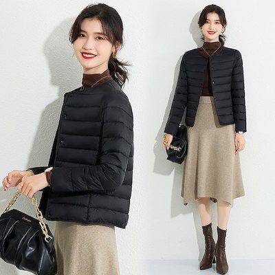 中綿コート レディース キルティングコート ダウンジャケット ダウンコート 秋冬 ショット丈 軽量 アウター 韓国風 ノーカラー OL 通勤