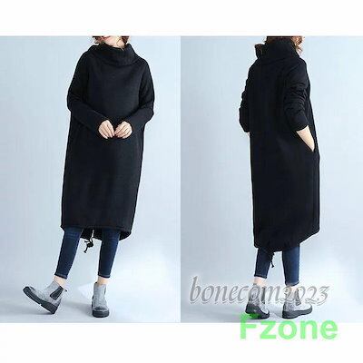 ワンピース レディース トップス 秋冬 着回し 裏起毛 ブラウス ハイネック 長袖 膝上 大きいサイズ ゆったり フラワーギャザー チュニック おしゃれ 30代 40代 5