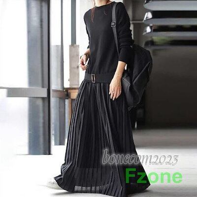 ワンピース レディース ニットトップス レイヤード風 ベルト付き マキシワンピース 長袖 秋冬 カジュアル きれいめ 通勤 旅行 お出かけ 30代