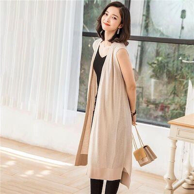 ベスト レディース ロング ジレ ノースリーブ サマージャケット カーディガン 袖なし ジャケット きれいめ トップス 羽織り 大きいサイズ