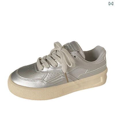 スニーカー レディース キャンバス シューズ フラット ローカット 厚底 女性 革 白い 靴 通気性 高さ カジュアル レースアップ