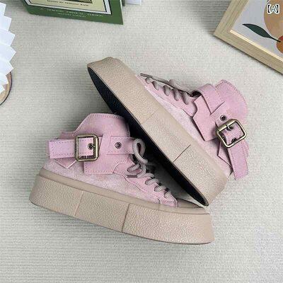 スニーカー レディース レトロ 厚底 靴 女性 ハイ カット シューズ ストラップ カジュアルスタイル