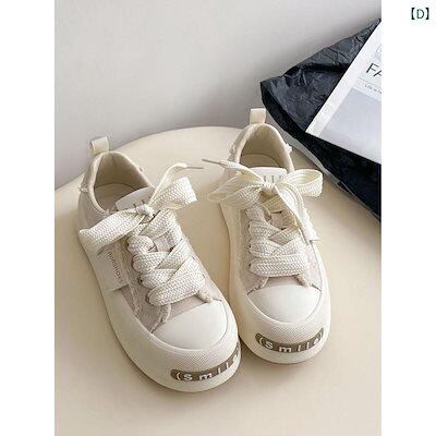 キャンバス シューズ スニーカー ローカット レディース 厚底 オープン スマイル レター ホワイト シューズ 女性 春 スタイル 学生 スポーツ シューズ