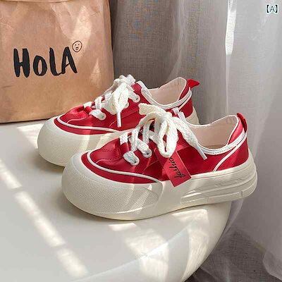 スニーカー レディース キャンバス シューズ フラット ローカット 女性 レトロ味 シック 厚底 白靴 春 カジュアル 靴