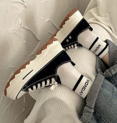 ナチュラルに美脚魅せ プラットフォーム 厚底 キャンバス スニーカー 靴 レースアップ カジュアル 6cmソール 韓国っぽ 学生 通学 シンプル ベーシック 韓国ストリート 韓国ガーリー フレンチカ