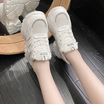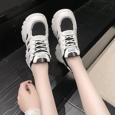 厚底 スニーカー メッシュスニーカー レディース 人気 ダッドスニーカー レディースシューズ 黒 白 韓国 厚底シューズ 軽量 ウォーキングシューズ 身長アップ おしゃれ 美脚 歩きやすい 疲れにくい