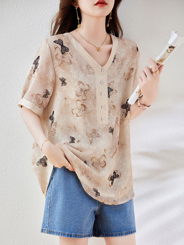 初回送料無料 大きいサイズのシフォンの半袖シャツ カジュアルトップス 人気上着