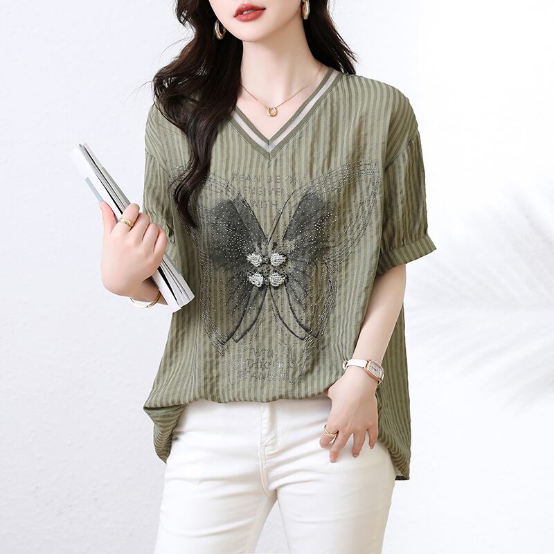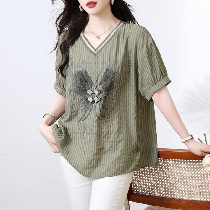 初回送料無料 Vネックの大きいサイズの半袖シャツ カジュアルトップス 人気ブラウス