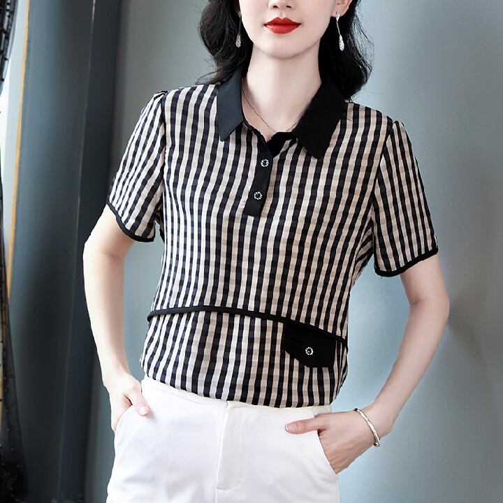 初回送料無料 シャツ風半袖Tシャツ 上着 折り襟 レディースファション商品 カジュアルトップス