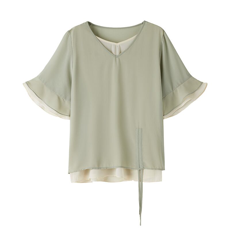 初回送料無料 Vネック半袖上着 レディースファション商品 カジュアルブラウス 人気商品