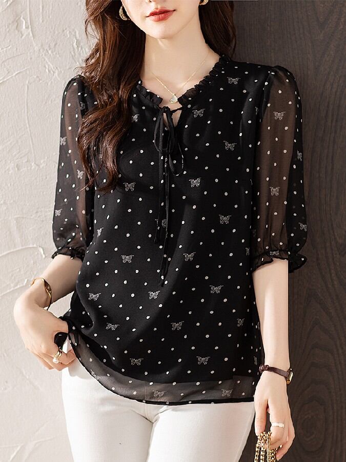 初回送料無料 半袖シャツ 上着 シフォントップス レディースファション商品 カジュアルブラウス